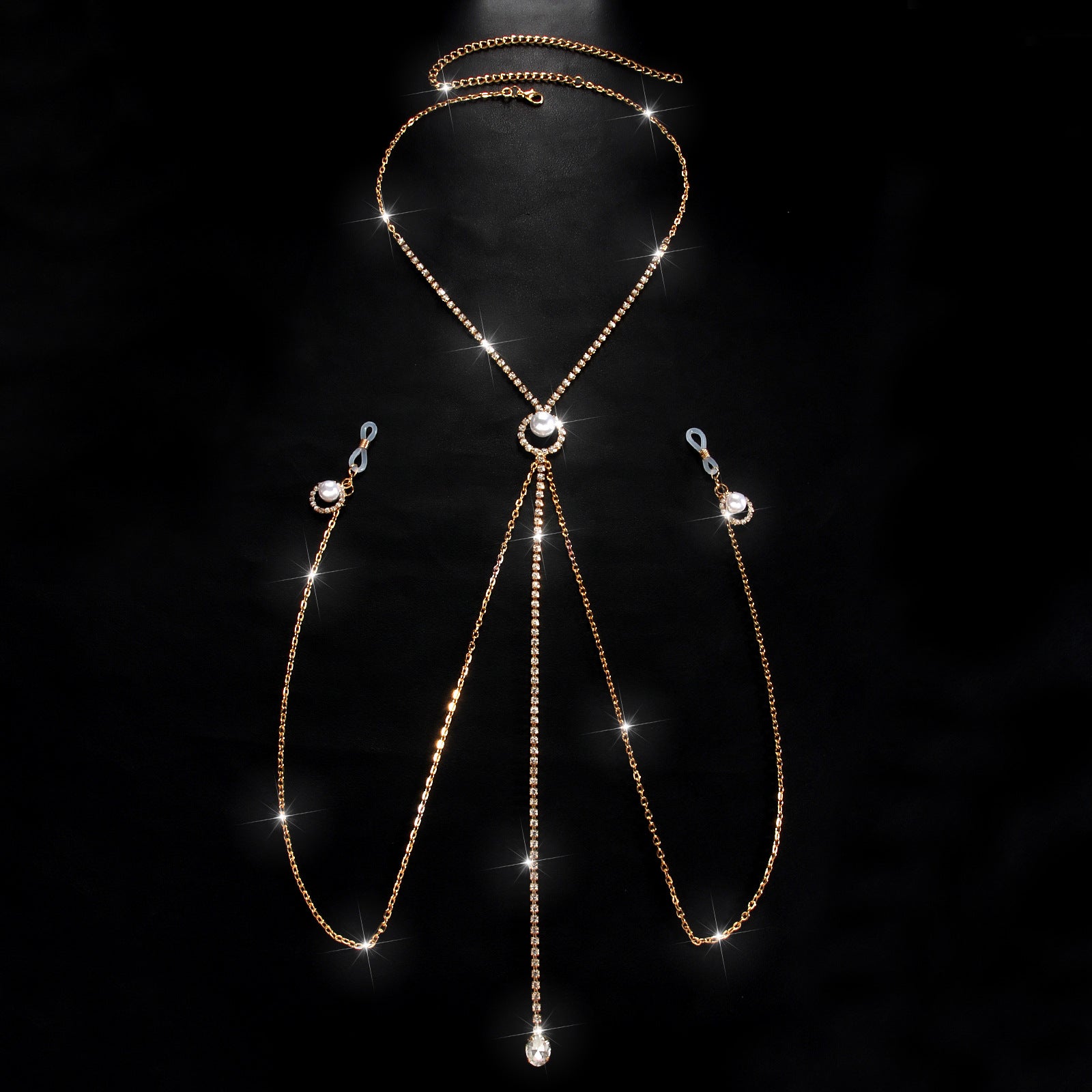 Delicate and daring — the Whisper Body Chain features soft pearl accents and fine gold chains that trace the curves of your body. Adjustable and lightweight, perfect for intimate looks or layered over lingerie.